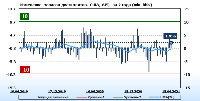 Запасы дистиллятов в США по данным института API выросли на 1.956 млн. баррелей.