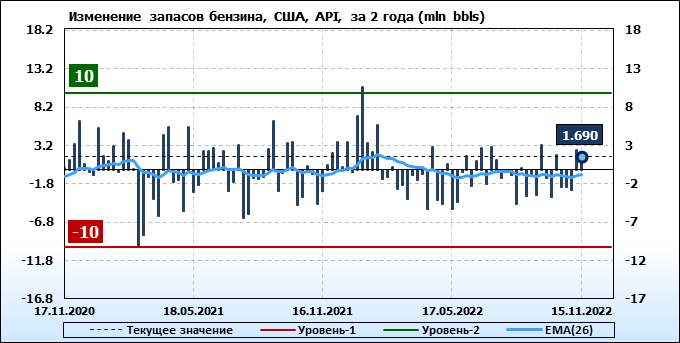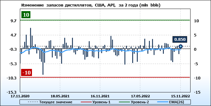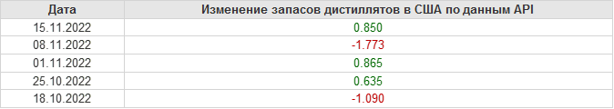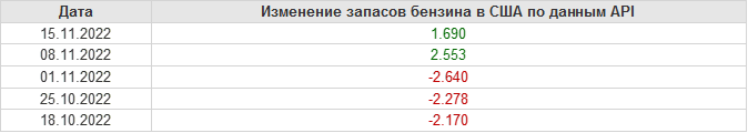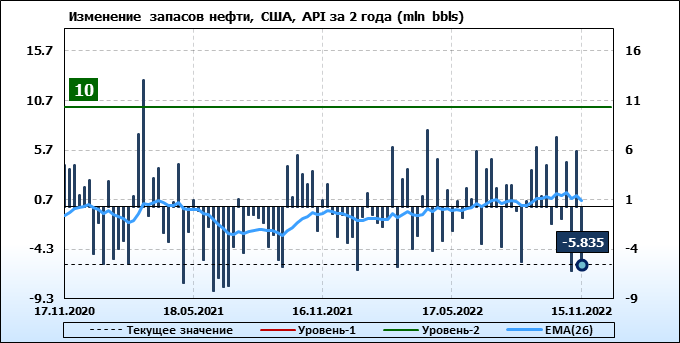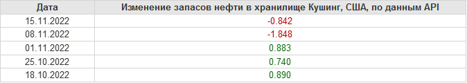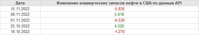 API. Изменение запасов нефти в США на 15 ноября 2022