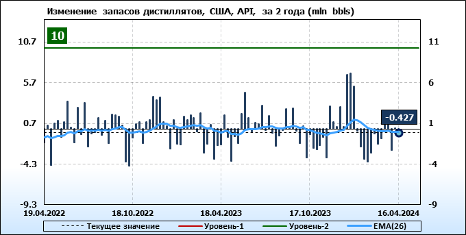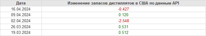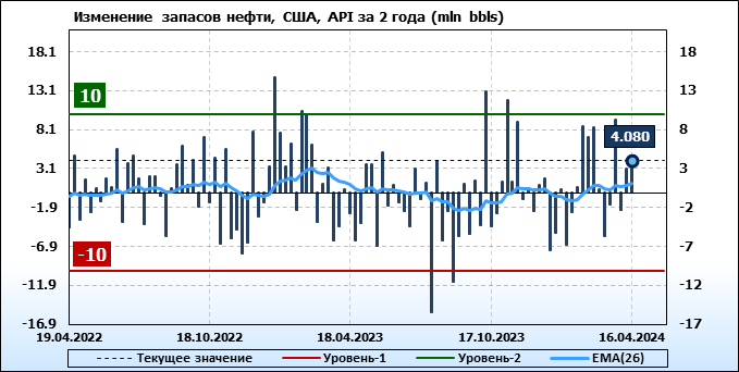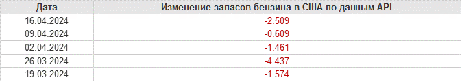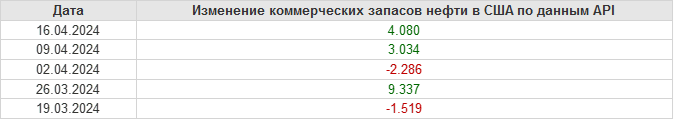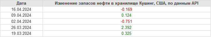 API. Изменение запасов нефти в США на 16 апреля 2024
