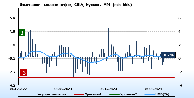 Запасы в хранилище Кушинг по данным института API упали на 0.746 млн. баррелей.
