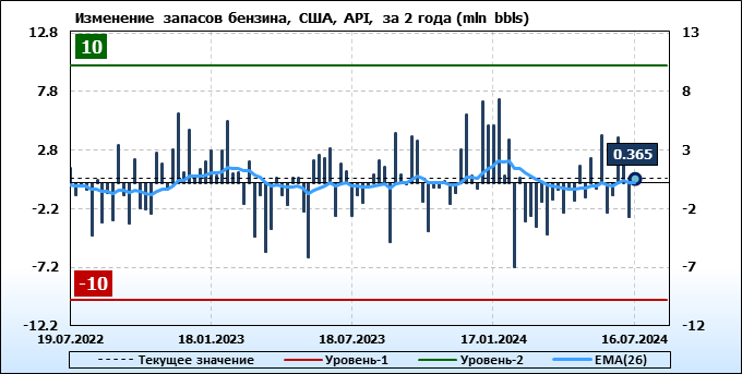 Запасы бензина в США по данным института API выросли на 0.365 млн. баррелей.