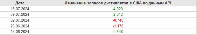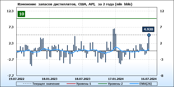Запасы дистиллятов в США по данным института API выросли на 4.92 млн. баррелей.