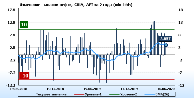 Коммерческие запасы нефти в США по данным института API выросли на 3.857 млн. баррелей.