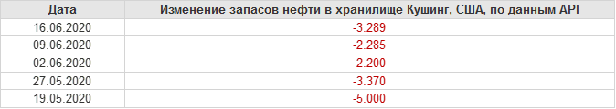 Запасы в хранилище Кушинг по данным института API упали на -3.289 млн. баррелей.