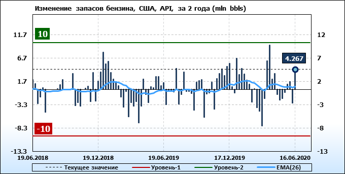 Запасы бензина в США по данным института API выросли на 4.267 млн. баррелей.