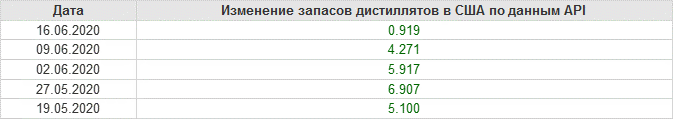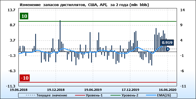 Запасы дистиллятов в США по данным института API выросли на 0.919 млн. баррелей.