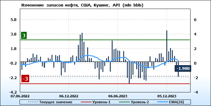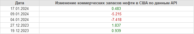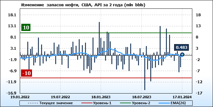 Коммерческие запасы нефти в США по данным института API выросли на 0.483 млн. баррелей, при прогнозе -2.4 млн. баррелей.