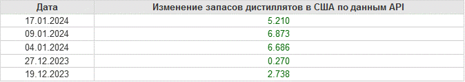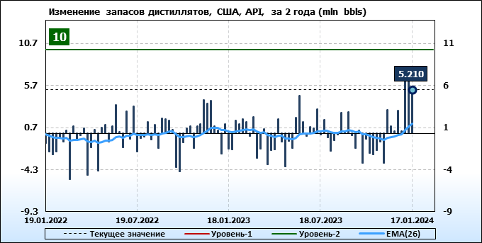 Запасы дистиллятов в США по данным института API выросли на 5.21 млн. баррелей.