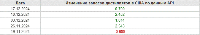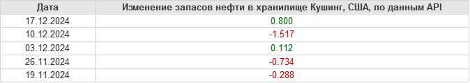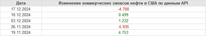 API. Изменение запасов нефти в США на 17 декабря 2024