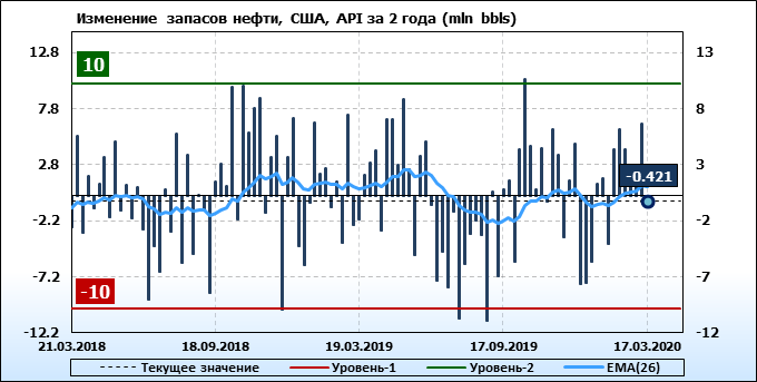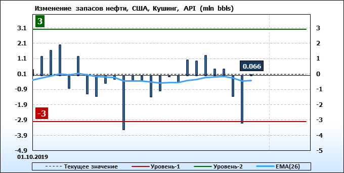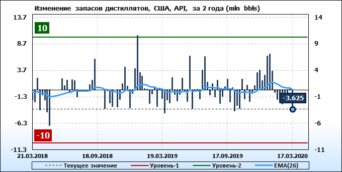 Запасы дистиллятов в США по данным института API упали на -3.625 млн. баррелей.