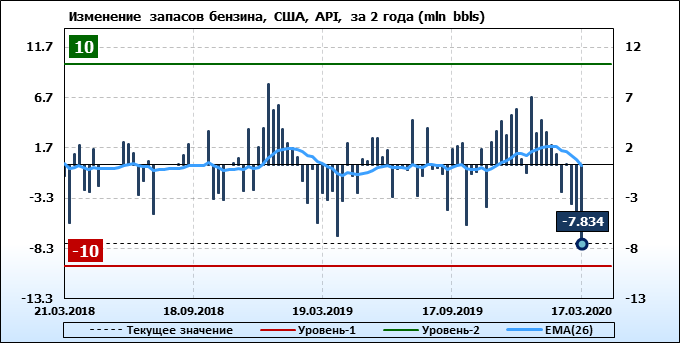 Запасы бензина в США по данным института API упали на -7.834 млн. баррелей.