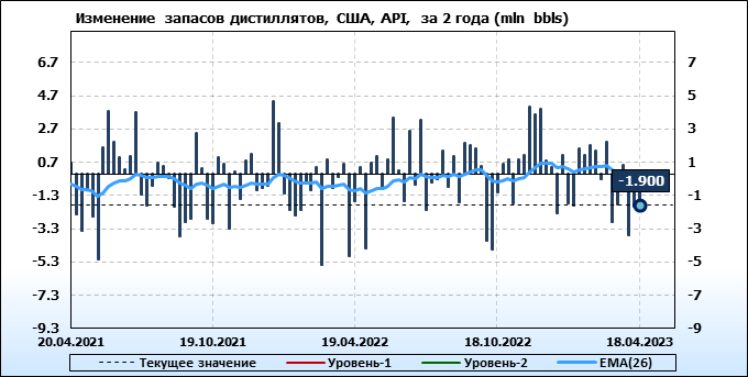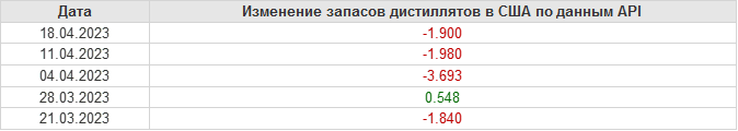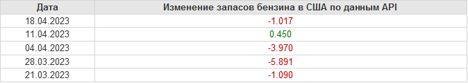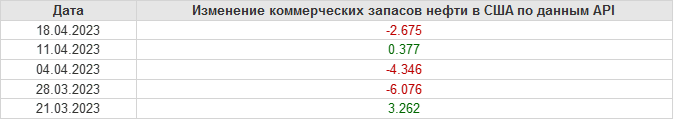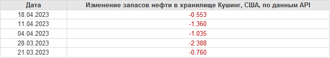API. Изменение запасов нефти в США на 18 апреля 2023
