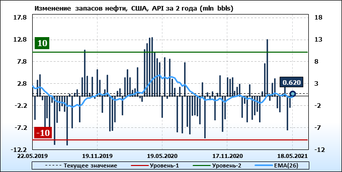 Коммерческие запасы нефти в США по данным института API выросли на 0.62 млн. баррелей.