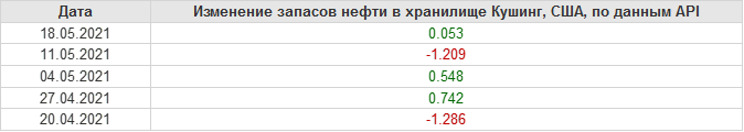 Запасы в хранилище Кушинг по данным института API выросли на 0.053 млн. баррелей.