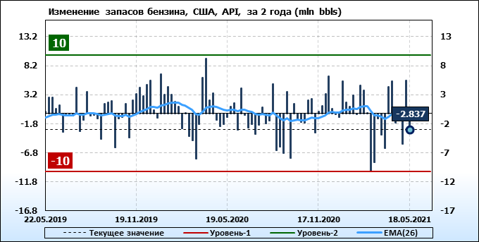 Запасы бензина в США по данным института API упали на 2.837 млн. баррелей.