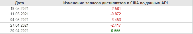 Запасы дистиллятов в США по данным института API упали на 2.581 млн. баррелей.