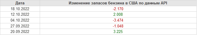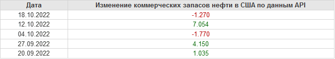 API. Изменение запасов нефти в США на 18 октября 2022