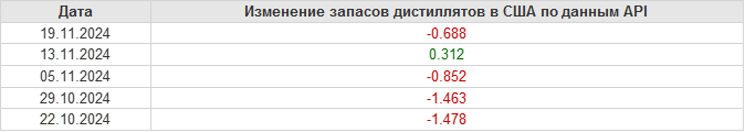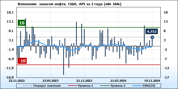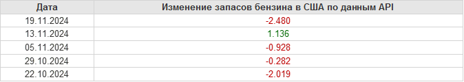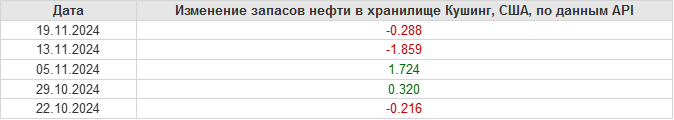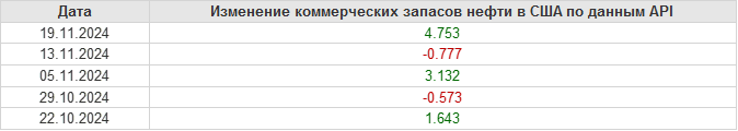 API. Изменение запасов нефти в США на 19 ноября 2024