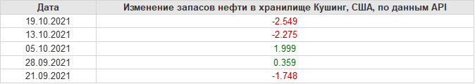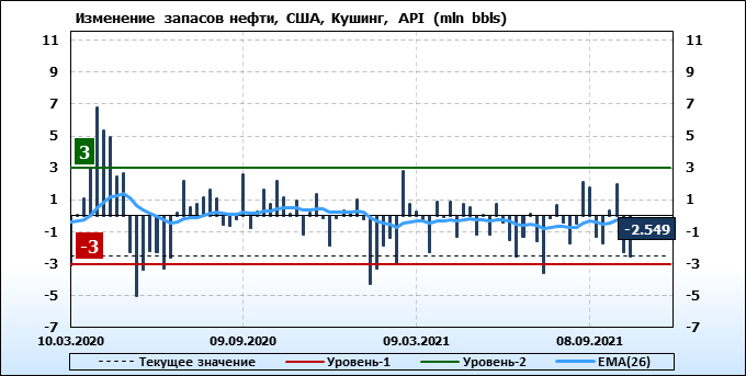 Запасы в хранилище Кушинг по данным института API упали на 2.549 млн. баррелей.