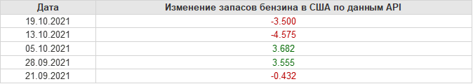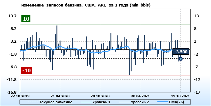 Запасы бензина в США по данным института API упали на 3.5 млн. баррелей.