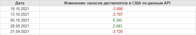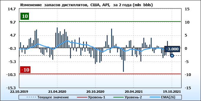 Запасы дистиллятов в США по данным института API упали на 3 млн. баррелей.