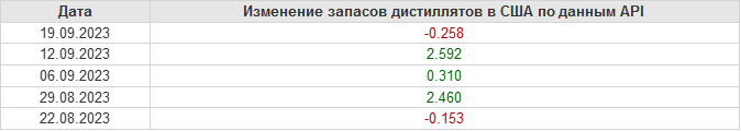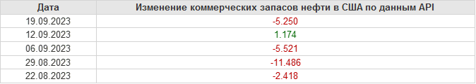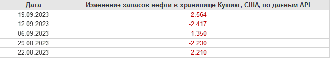 API. Изменение запасов нефти в США на 19 сентября 2023