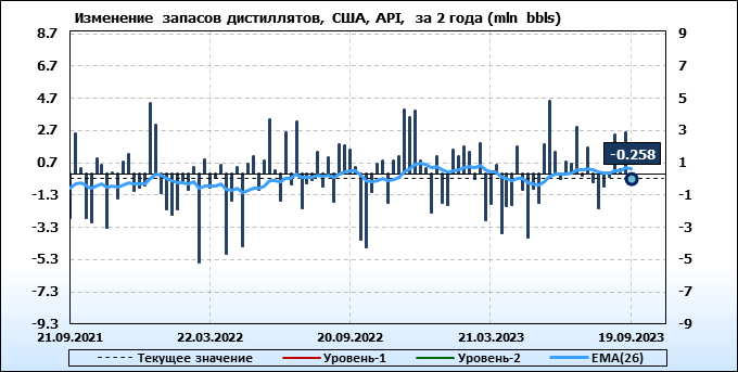 Запасы дистиллятов в США по данным института API упали на 0.258 млн. баррелей.