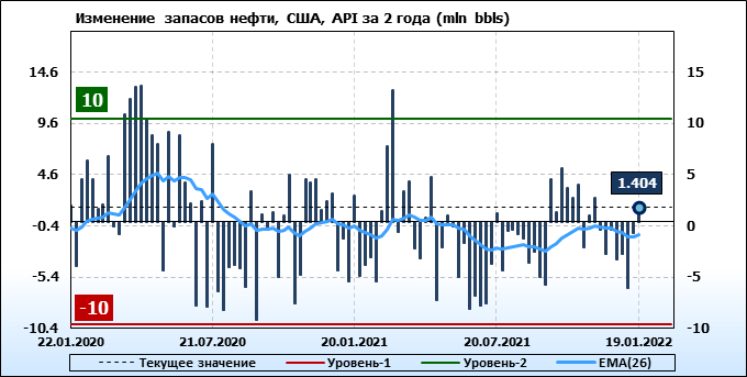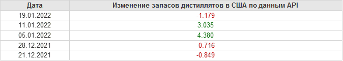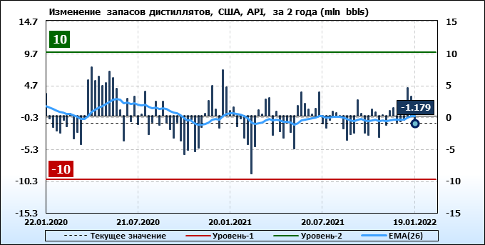 Запасы дистиллятов в США по данным института API упали на 1.179 млн. баррелей.