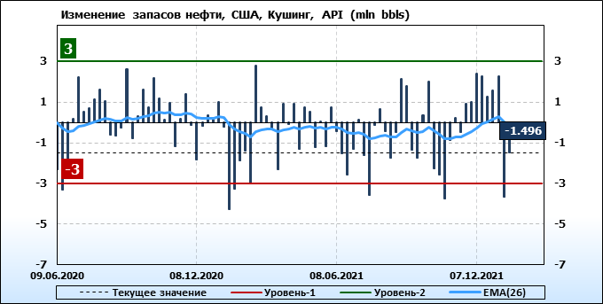 Запасы в хранилище Кушинг по данным института API упали на 1.496 млн. баррелей.
