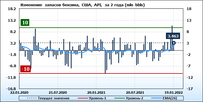 Запасы бензина в США по данным института API выросли на 3.463 млн. баррелей.