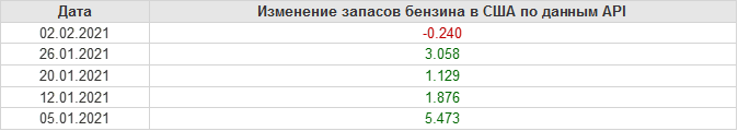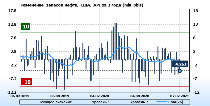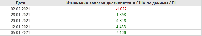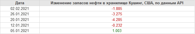 API. Изменение запасов нефти в США на 2 февраля 2021