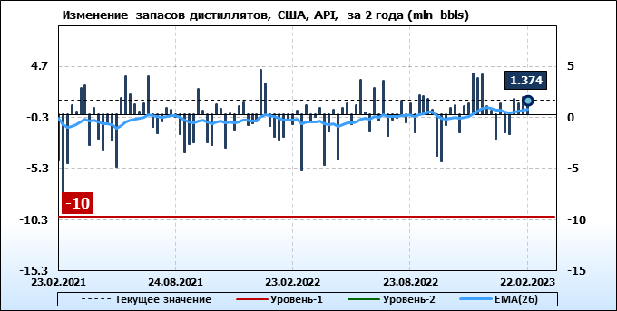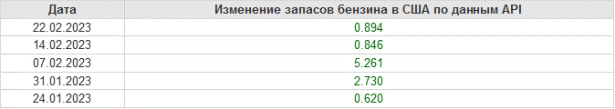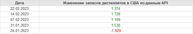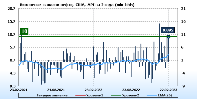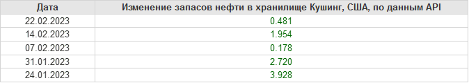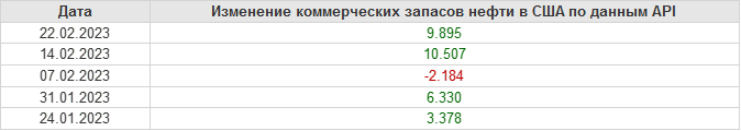 API. Изменение запасов нефти в США на 22 февраля 2023
