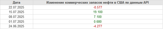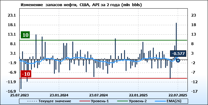 Коммерческие запасы нефти в США по данным института API упали на 0.577 млн. баррелей.