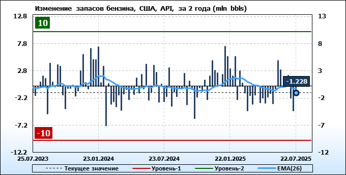 Запасы бензина в США по данным института API упали на 1.228 млн. баррелей.