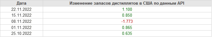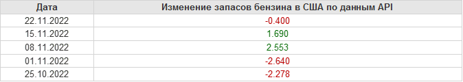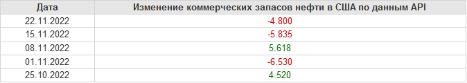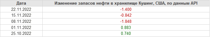 API. Изменение запасов нефти в США на 22 ноября 2022