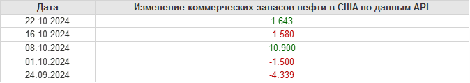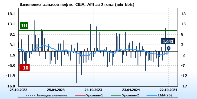 Коммерческие запасы нефти в США по данным института API выросли на 1.643 млн. баррелей, при прогнозе +0.7 млн. баррелей.