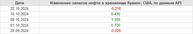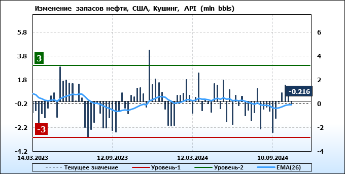 Запасы в хранилище Кушинг по данным института API упали на 0.216 млн. баррелей.