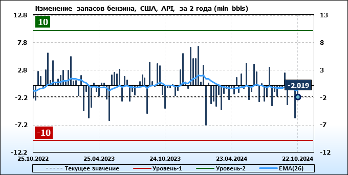 Запасы бензина в США по данным института API упали на 2.019 млн. баррелей.