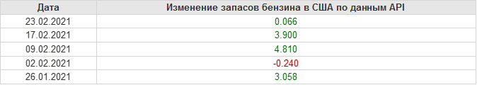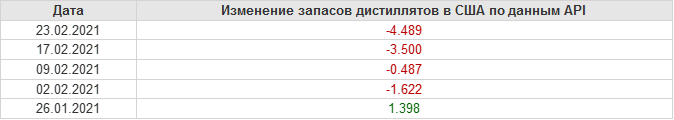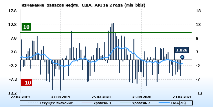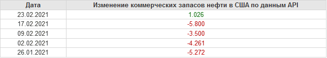 API. Изменение запасов нефти в США на 23 февраля 2021