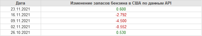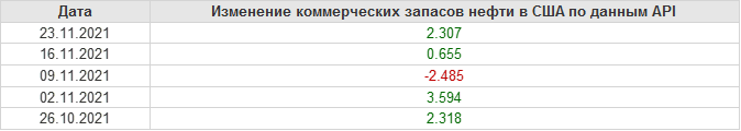 API. Изменение запасов нефти в США на 23 ноября 2021