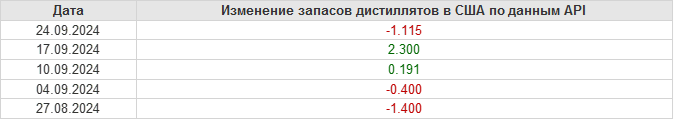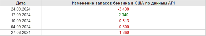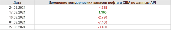 API. Изменение запасов нефти в США на 24 сентября 2024