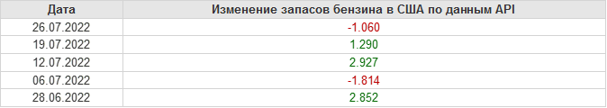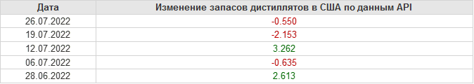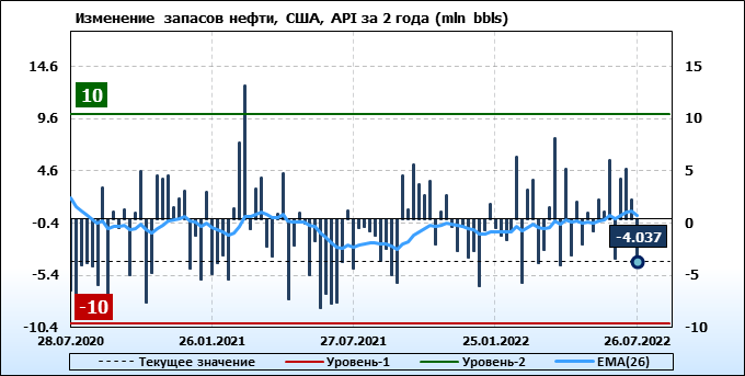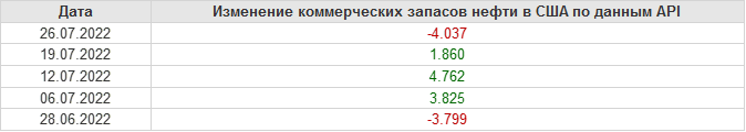 API. Изменение запасов нефти в США на 26 июля 2022