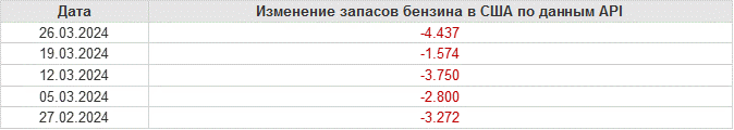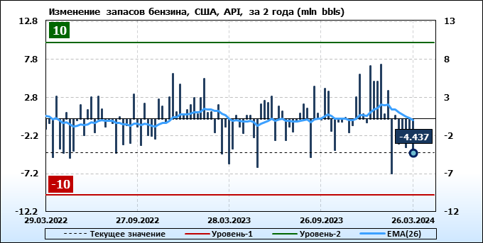 Запасы бензина в США по данным института API упали на 4.437 млн. баррелей.