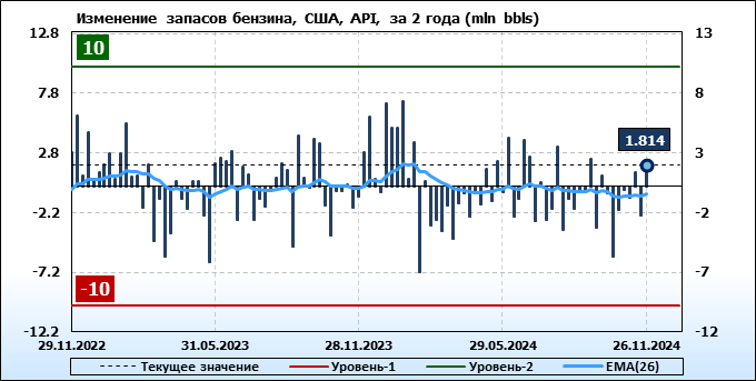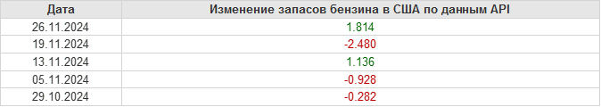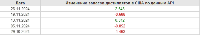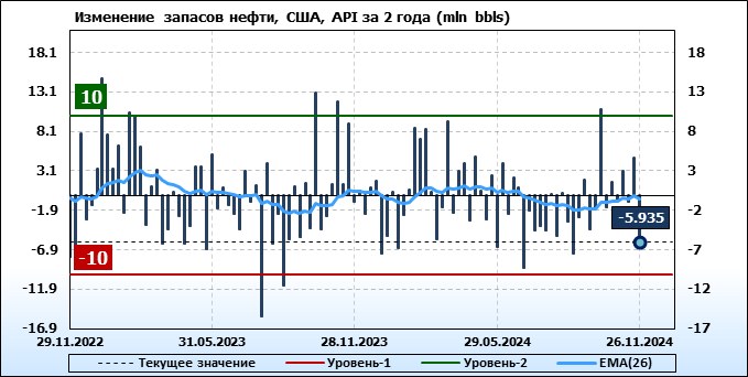 API. Изменение запасов нефти в США на 26 ноября 2024