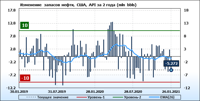 Коммерческие запасы нефти в США по данным института API упали на 5.272 млн. баррелей.
