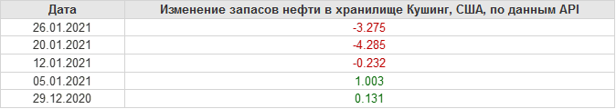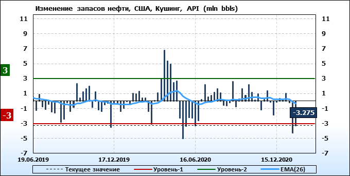 Запасы в хранилище Кушинг по данным института API упали на 3.275 млн. баррелей.