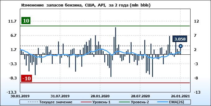 Запасы бензина в США по данным института API выросли на 3.058 млн. баррелей.