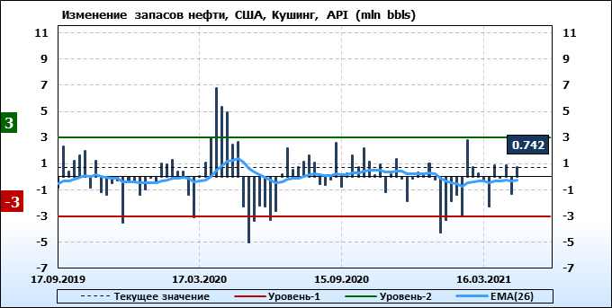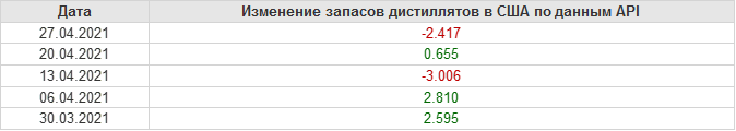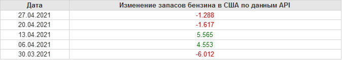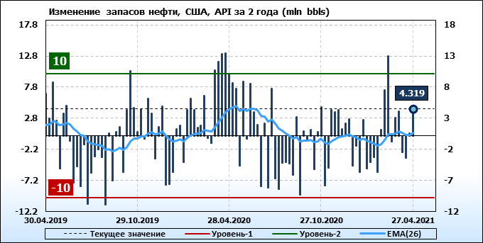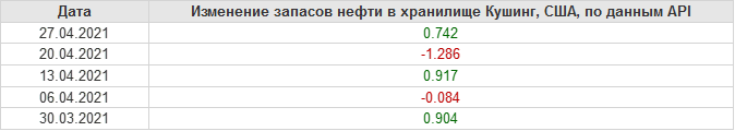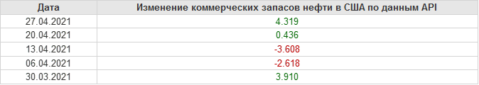 API. Изменение запасов нефти в США на 27 апреля 2021