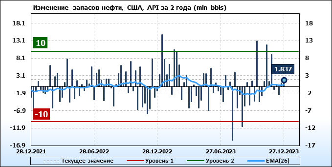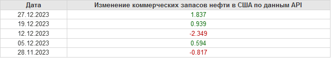 API. Изменение запасов нефти в США на 27 декабря 2023