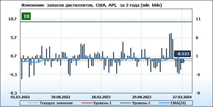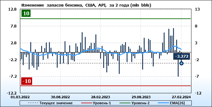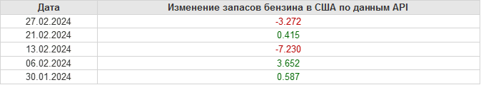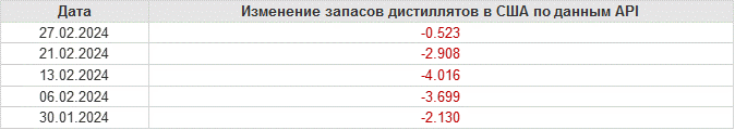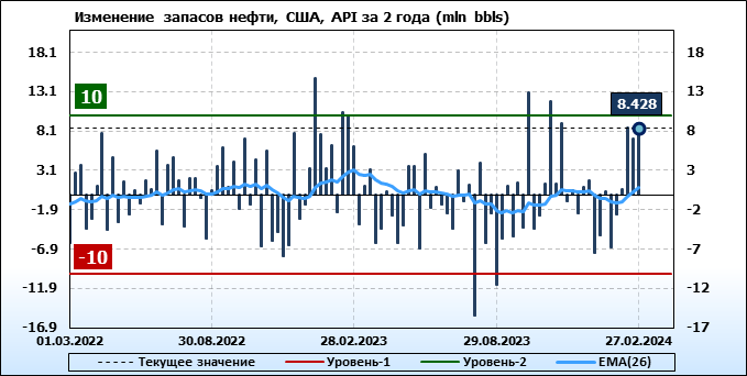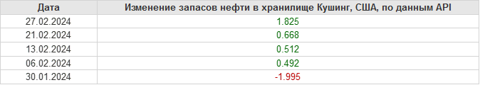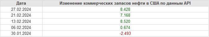 API. Изменение запасов нефти в США на 27 февраля 2024